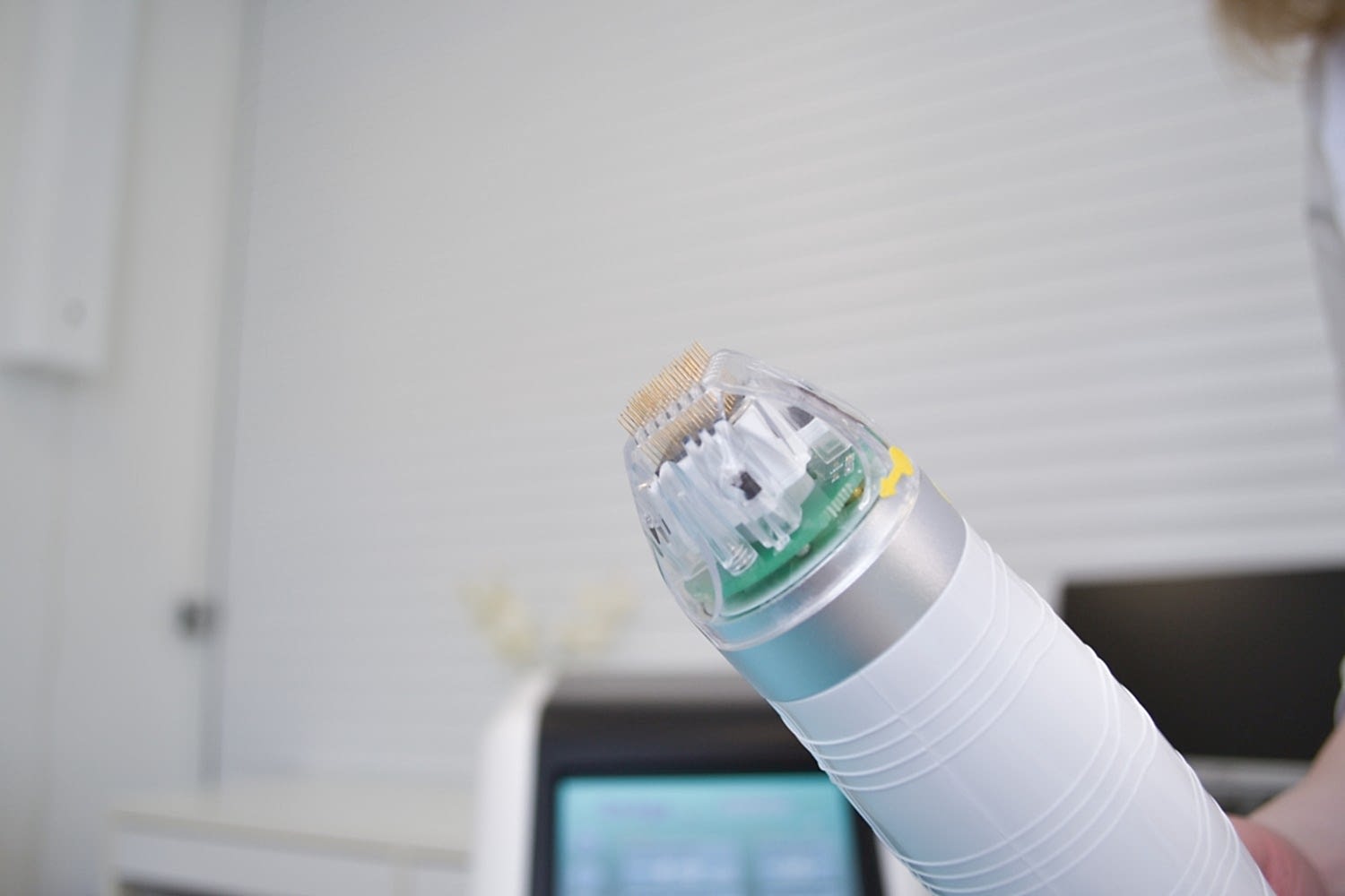 Воздействие на целевые структуры кожи происходит за счет позолоченных микроигл, они доставляют RF-энергию на нужную глубину, запускают процессы регенерации коллагена и эластина, сокращения волокон соединительной ткани, формирования соединительнотканного матрикса.