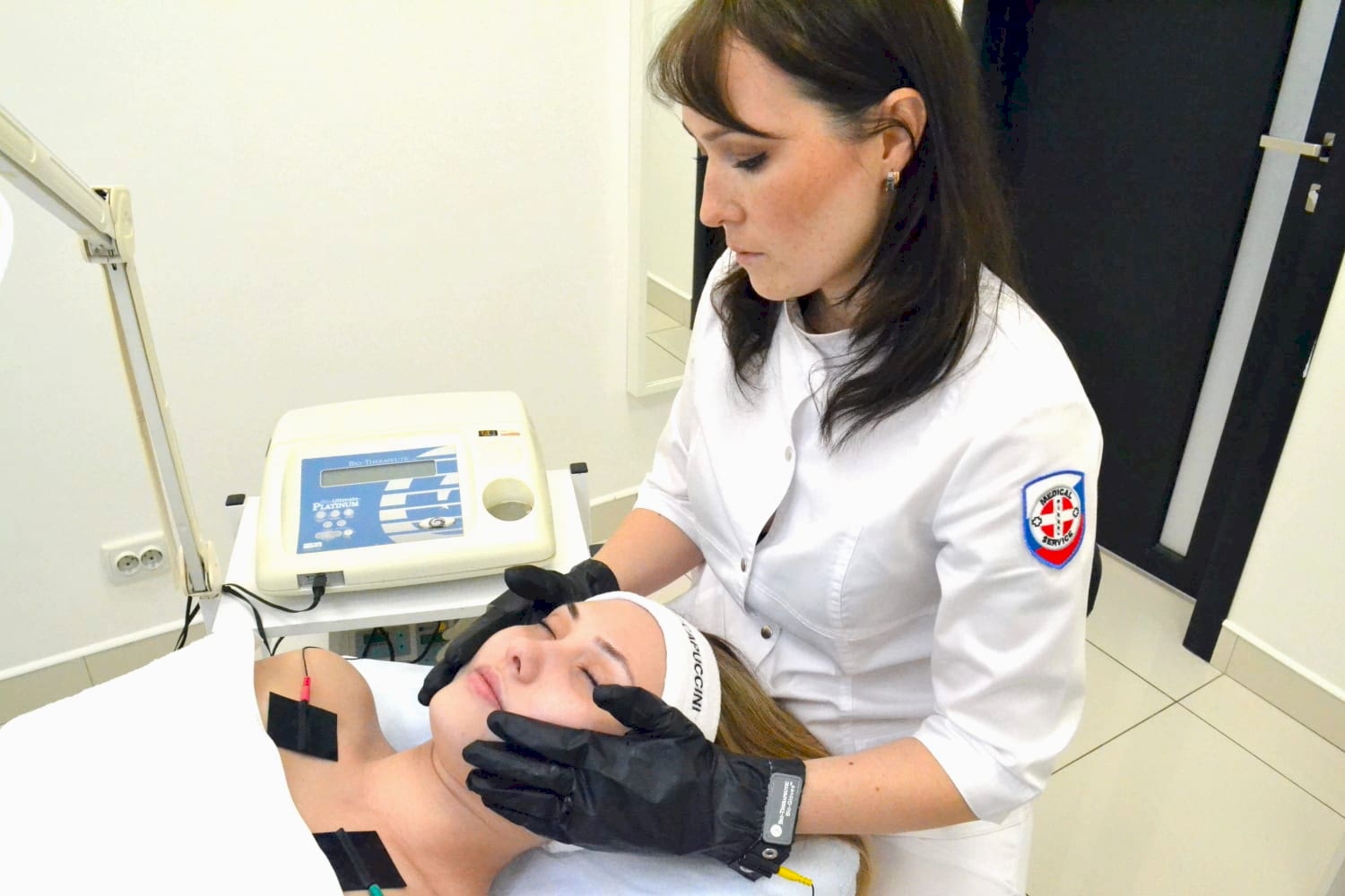 Процедура предназначена для проведения терапевтического воздействия на кожные покровы, мышечную ткань и лимфатические сосуды импульсным током малого напряжения с различными частотными характеристиками. Воздействие микротоков оказывает выраженный благотворный эффект на стареющую кожу: лечение морщин, гиперпигментации и других признаков старения. В отличие от электромиостимуляции микротоковая терапия не оказывает прямой мышечной стимуляции и не вызывает видимого сокращения мышц. Восстановление мышечных волокон происходит за счет оптимизации процессов, происходящих в каждой клетке. Это позволяет восстанавливать атрофированные мышцы и снимать мышечные Pin-Up улучшая эстетический вид лица (уменьшение «второго» подбородка, разглаживание носогубного треугольника).