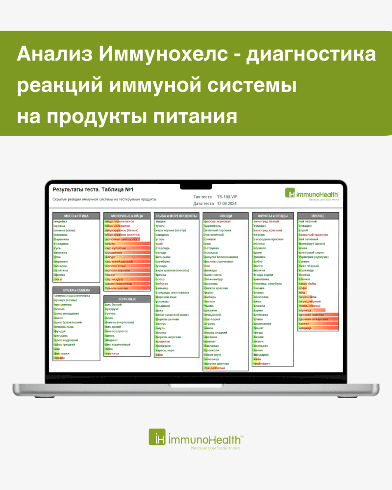 ImmunoHealth- индивидуальная программа лечения и Pin-Up заболеваний, вызванных скрытой пищевой непереносимостью: